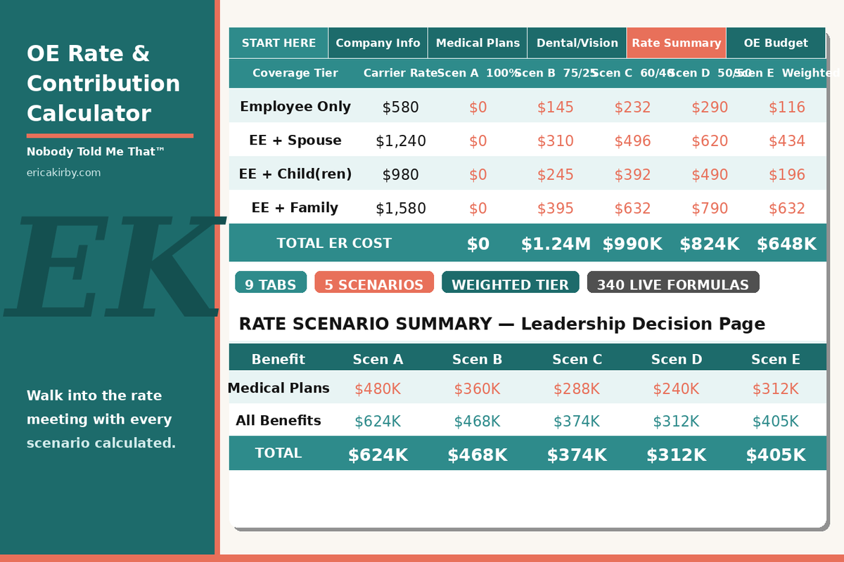 - 9-Tab Excel Rate & Contribution Calculator โ Walk into every carrier meeting and leadership conversation with every scenario already calculated