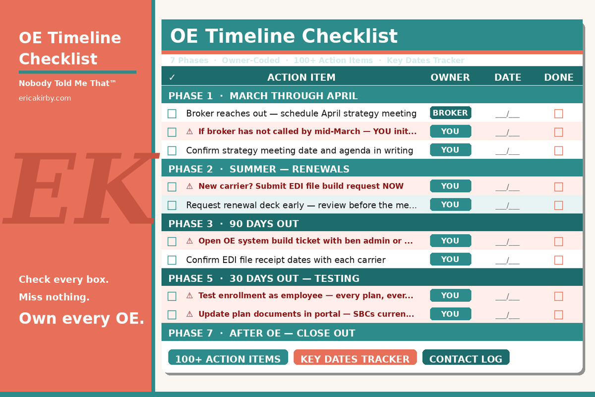 - Open Enrollment Checklist โ Close out OE, knowing nothing fell through the cracks